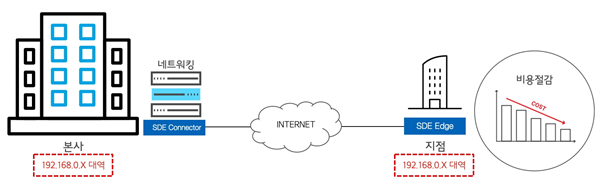 또한, 기존에 본사와 지점 간에 전용선으로 연결이 되어 있던 고객사는 SDE서비스를 통해 비용을 절감하였습니다.