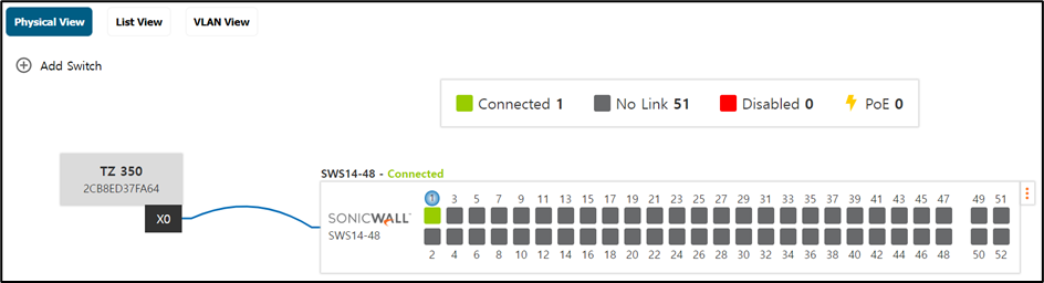 연동형 스위치의 또 다른 특징으로 방화벽에서 스위치 관리가 가능하다는 점이 있습니다.