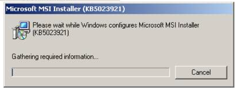 실행 후 다음 설치 진행률 창이 나타납니다. 참조된 Knowledge Base 코드(KB5023921)는 존재하지 않으며, 완전히 구성되어 있습니다.