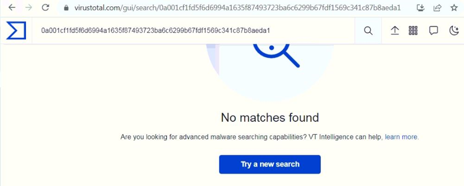 VirusTotal 및 ReversingLabs와 같은 일반적인 위협 인텔리전스 공유 포털에서 아카이브 파일을 사용할 수 없는 것은 아카이브 파일이 고유하고 배포가 제한적이라는 것을 나타냅니다.