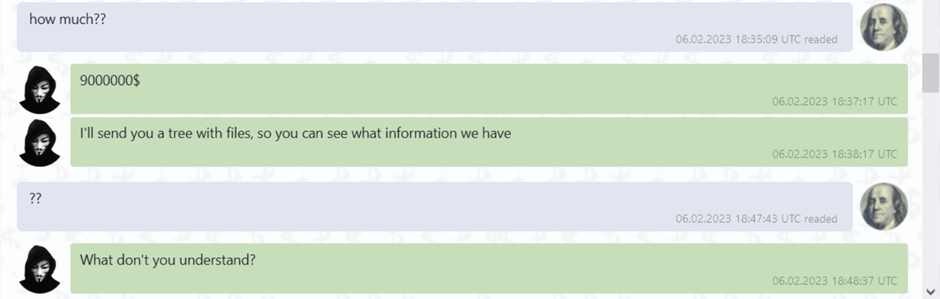 900만 달러의 복호화 요금을 공개하는 오퍼레이터와 다음과 같은 대화가 확인되었습니다.