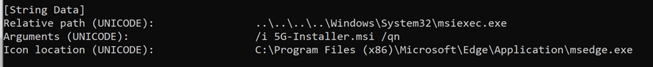 LNK 파일은 msiexe.exe를 사용하여 MSI 파일을 로드하기 위한 포인터 역할을 하는 Windows 바로 가기 파일입니다.