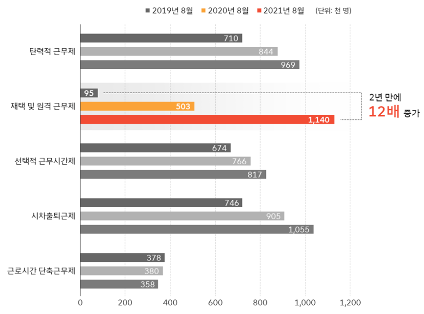 펜데믹 기간 동안 비대면 방식의 근무 형태가 직원들에게는 업무의 효율성 향상과 출퇴근 등에 소요되는 시간 절약 등의 장점이 있었고, 기업에서는 이로 인한 생산성 증대로 이어지는 부분이 일정 부분 검증이 된 것이 아닌가 싶습니다.
