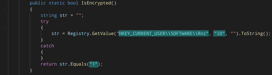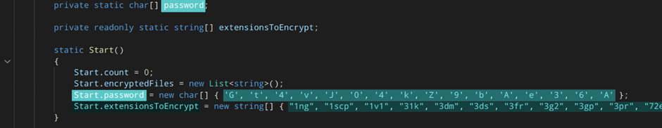 해당 랜섬웨어는 C#으로 작성되어있고, 디컴파일이 간단하며 암호화 및 암호 해독 기능은 아래 코드에서 쉽게 확인할 수 있습니다.