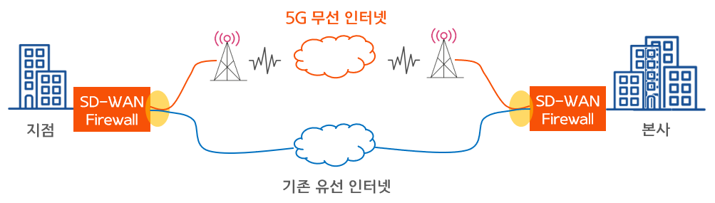SD-WAN 5G 무선 인터넷 회선 서비스 구성 예시