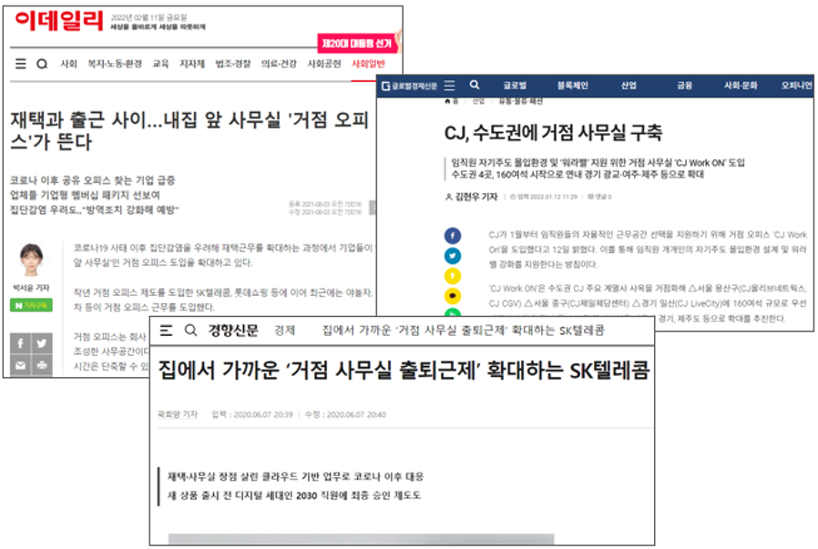 최근 기업이 재택근무에 이어 업무 효율을 높이고, 본사 사무실 등의 운영 비용 절감을 위해 거점 사무실 도입을 확장하고 있습니다.