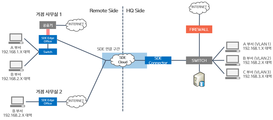 - SDE 연결을 통해 거점 사무실은 본사와 물리적인 케이블을 연결한 것과 같은 동일한 효과 적용.
