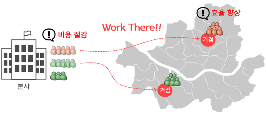 아무래도 변화하는 업무 환경에 따라 직원들의 업무 능률 향상과 함께 비교적 고비용의 본사 운영 비용을 거점 사무실을 통해 절감하는 부분을 많이 고려하시는 듯 합니다.