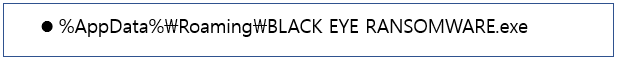 또한, 사용자가 재부팅 시에도 실행되도록, 시스템 재부팅 시 실행되는 “BLACK EYE RANSOMWARE”실행파일이 %Startup% 디렉터리에 추가 됩니다.