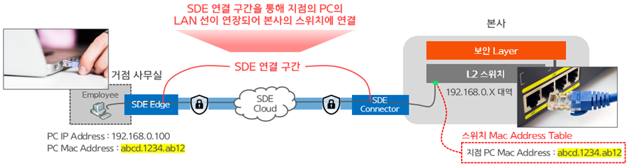 - SDE 연결을 통해 거점 사무실은 본사와 물리적인 케이블을 연결한 것과 같은 동일한 효과 적용.