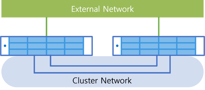 2-Node HCI Appliance without Active Directory는 클러스터 구성을 위한 스위치 없이 구축하므로손쉽게 가상 컴퓨터에 대한 고가용성 구성을 할 수 있으며, 물리적 장애에 대한 안정적인 서비스 운영 환경을 제공합니다.