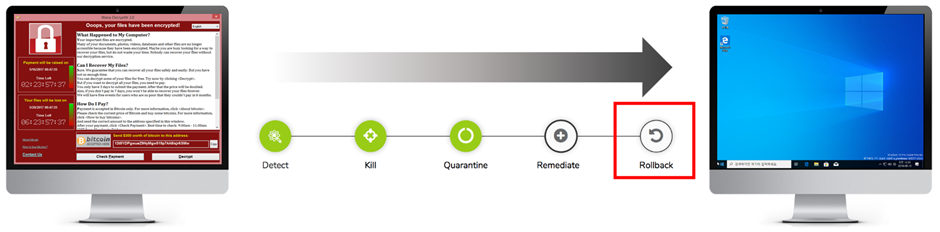 - Windows VSS 기능을 활용하여 감염 이전 시점으로 복원할 수 있는 Rollback 기능 지원.