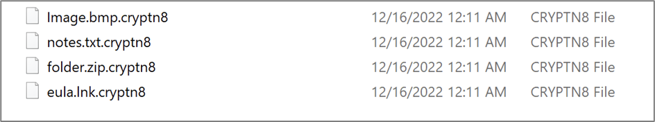 한편, 파일의 암호화는 백그라운드에서 행해지고 있습니다. 암호화된 파일에는 파일 확장자 “.cryotn8”이 추가됩니다.