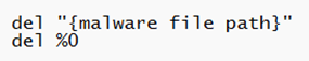 ntfs_system.bat 파일에는 다음 스크립트가 포함되어 있습니다. 이는 원본 멀웨어 파일을 삭제하는 데 사용됩니다.